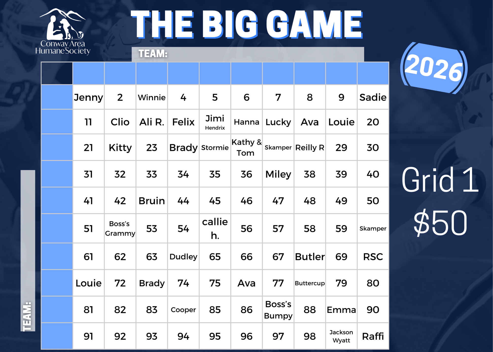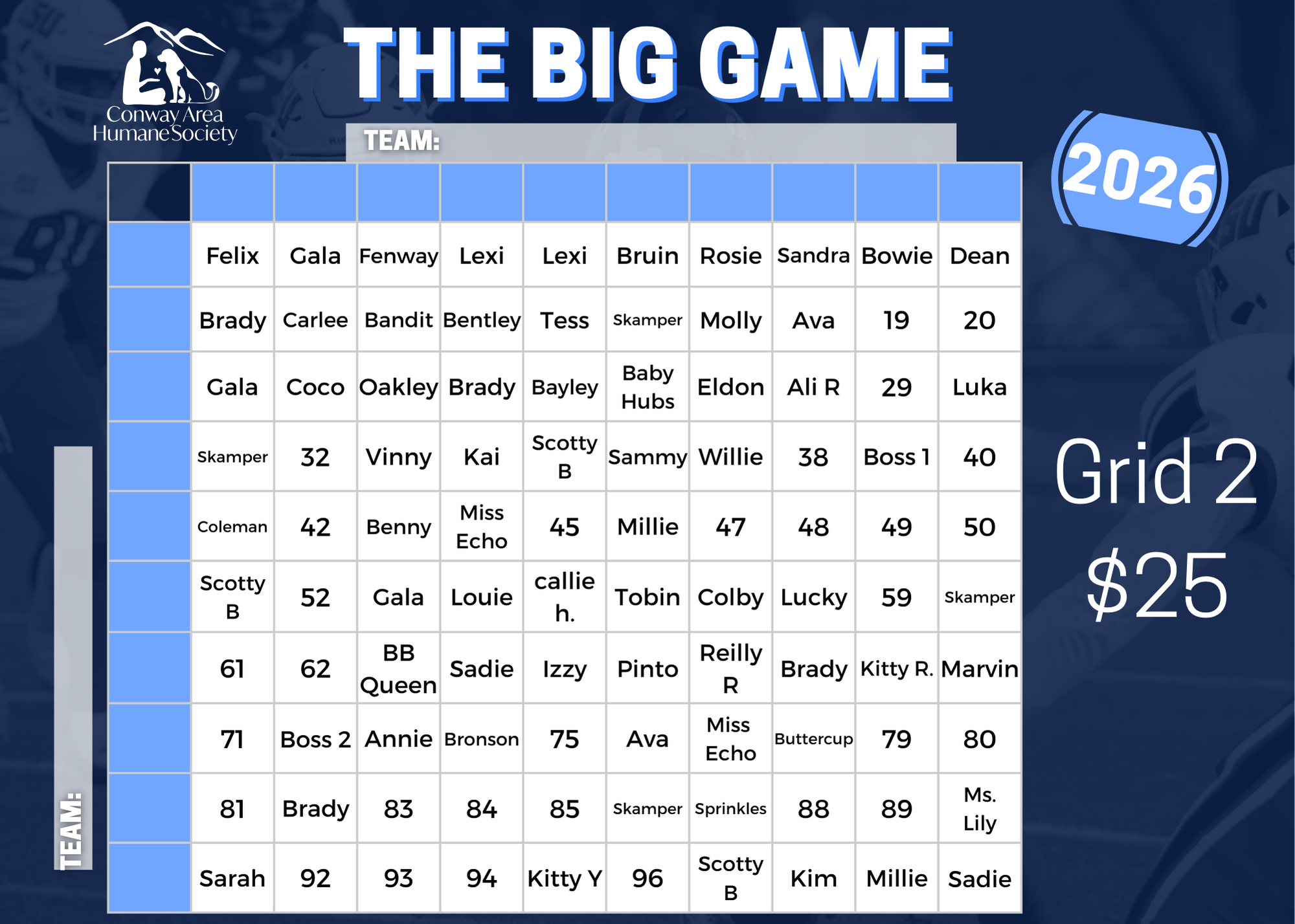 "The Big Game" Squares benefiting animals in need - Feb 8th 2026 is game day!